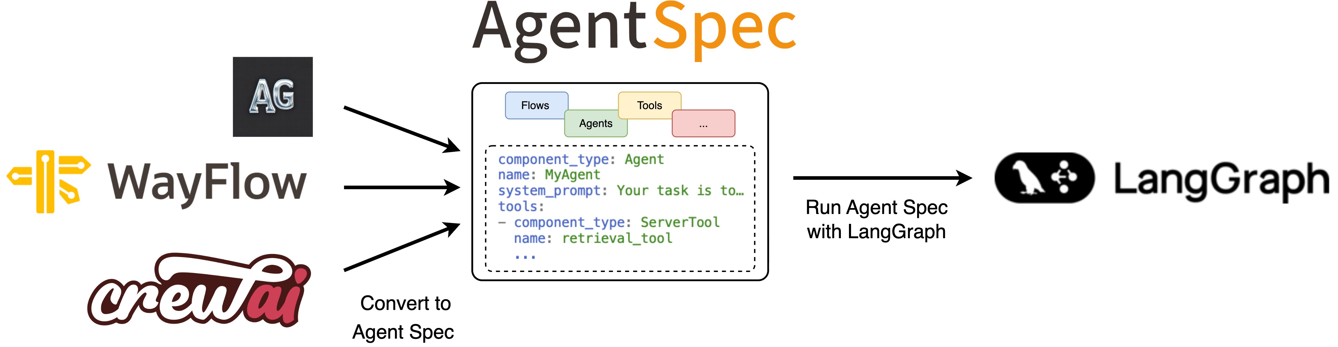 ↑ With the Agent Spec adapter for LangGraph, you can easily import agents from external frameworks using Agent Spec and run them with LangGraph.#
