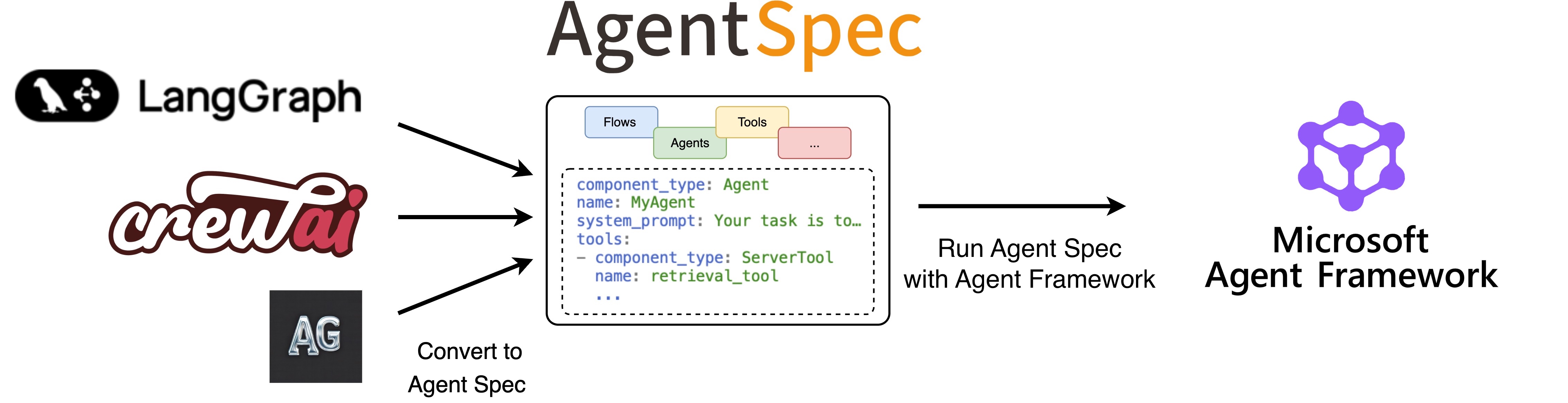 ↑ With the Agent Spec adapter for Microsoft Agent Framework, you can easily import agents from external frameworks using Agent Spec and run them with Agent Framework.#