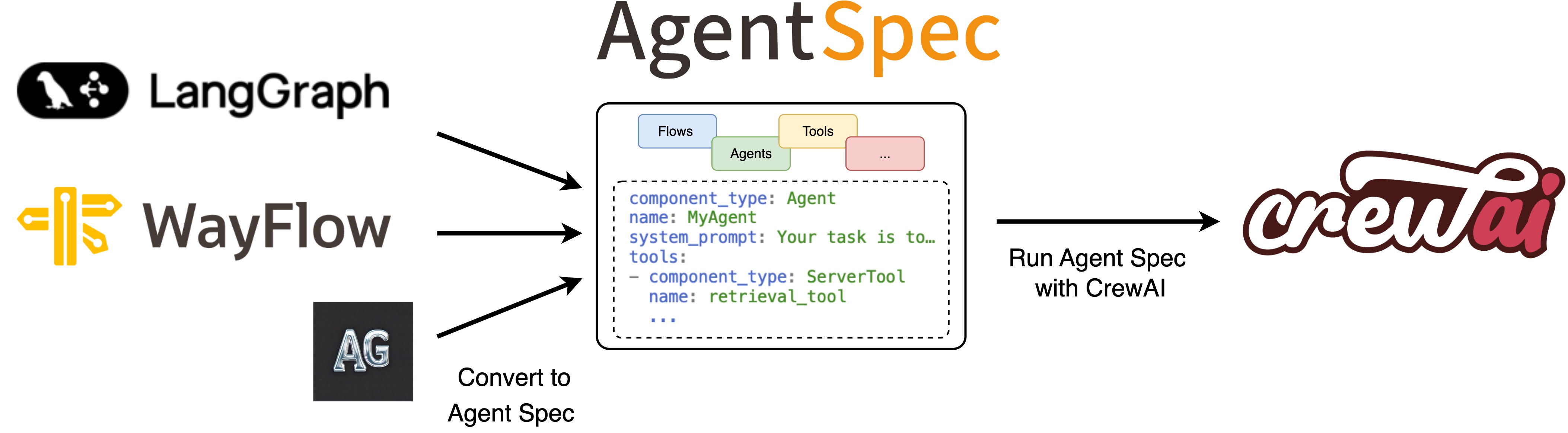 ↑ With the Agent Spec adapter for CrewAI, you can easily import agents from external frameworks using Agent Spec and run them with CrewAI.#