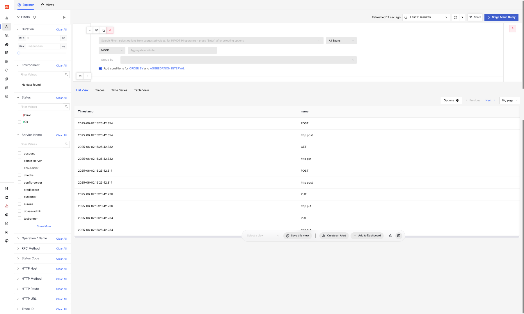 Traces can be filtered based on Service, HTTP Routes etc. Click on a trace to see its details.